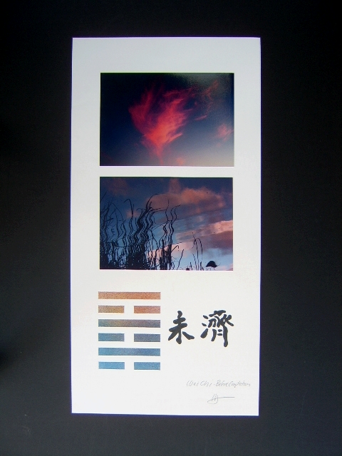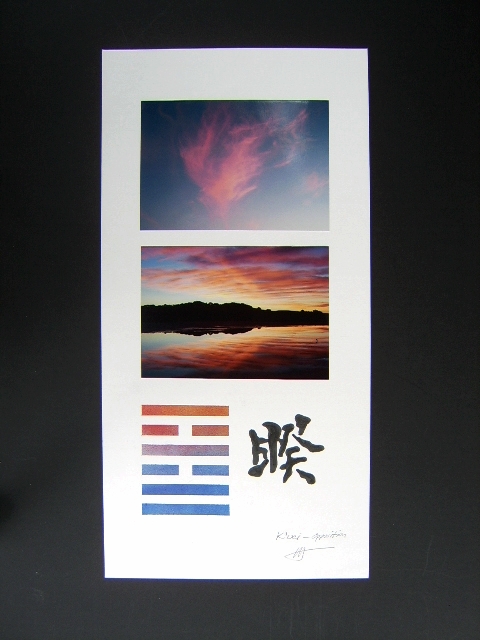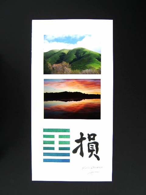 This work is a combination of photographic images inspired by the I-Ching or book of changes. It is part of a series of art pieces created by arranging images representing the attributes of each trigram, one above and one below, to illustrate the sixty-four hexagrams from the book.